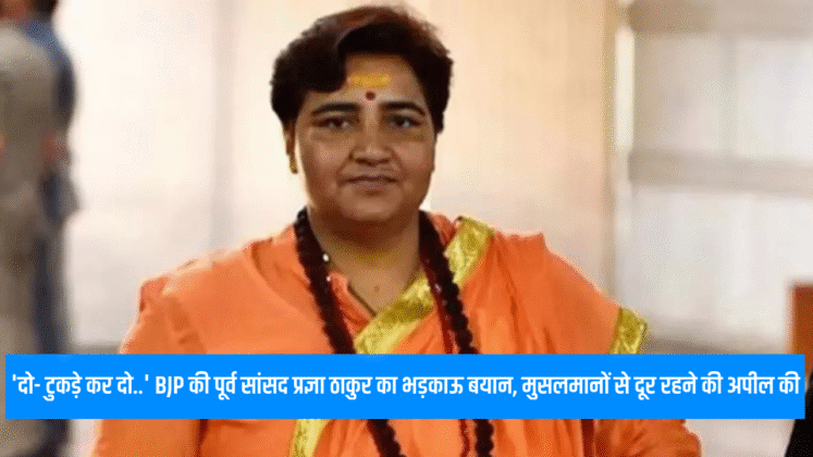 Pragya Thakur provocative statement: मालेगांव बम ब्लास्ट मामले में बरी हुई बीजेपी की पूर्व सांसद और हिंदुत्व कार्यकर्ता प्रज्ञा सिंह ठाकुर ने मुसलमानों को निशाना बनाते हुए विवादित बयान दिया है. प्रज्ञा ठाकुर ने भोपाल में दुर्गा वहिनी शस्त्र पूजन के दौरान हिंदू महिलाओं से कहा कि वे मुस्लिम पुरुषों से बचें और उनसे घरों का काम ना करवाएं. अगर दुश्मन (मुसलमान) आपके घर की दहलीज पार करे तो उसे दो टुकड़े कर दो.