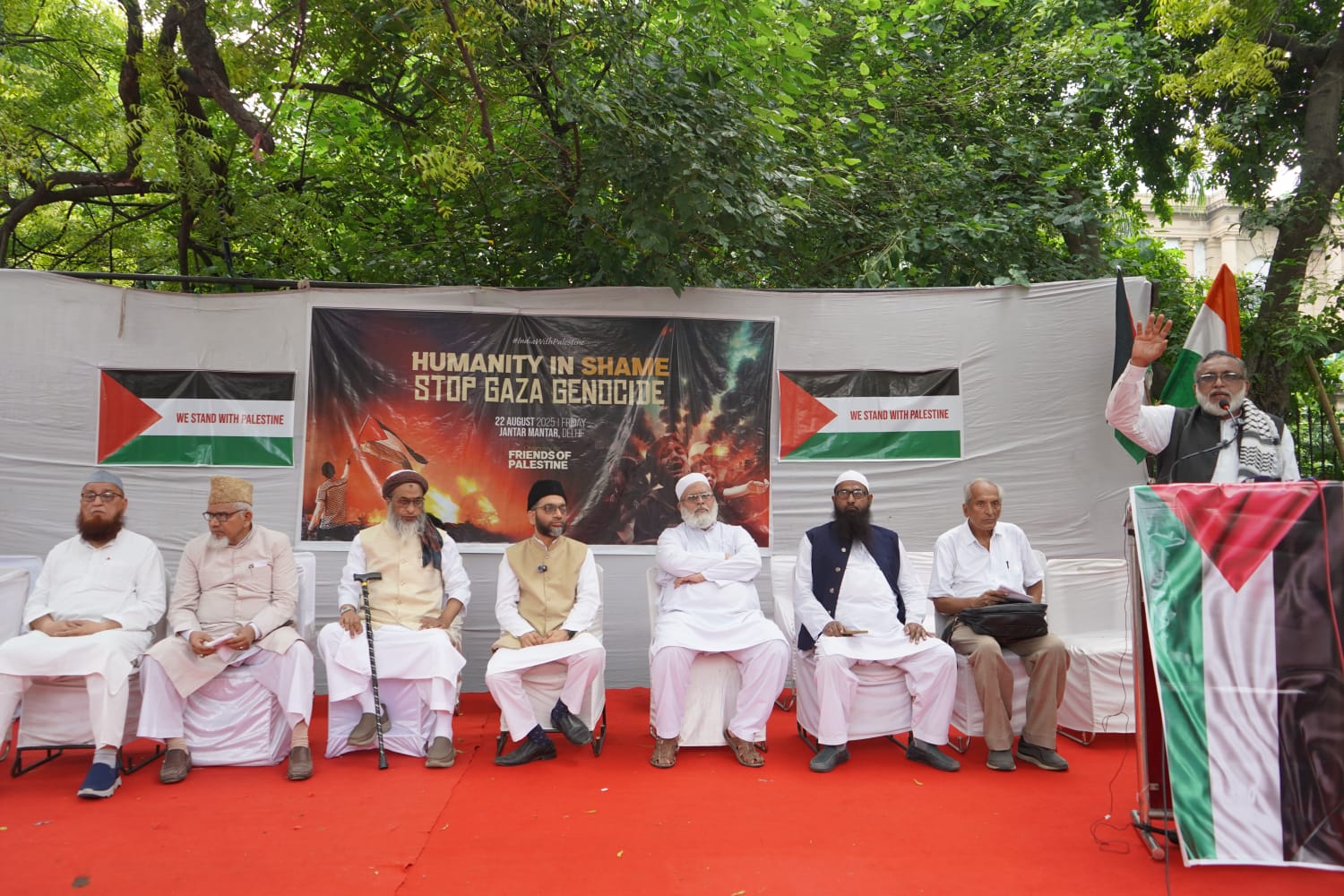दिल्ली और आसपास के राज्यों से सैकड़ों लोग धर्म, विचारधारा और सामाजिक पृष्ठभूमि की सीमाओं से ऊपर उठकर इस प्रदर्शन में शामिल हुए. इस विरोध प्रदर्शन में बड़ी संख्या में छात्रों, सामाजिक, धार्मिक, राजनीतिक नेताओं और विशिष्ट नागरिक समाज कार्यकर्ताओं ने भाग लिया. फिलिस्तीन के साथ एकता दिखाने के लिए आयोजित इस सभा में लगभग सभी धार्मिक, सांस्कृतिक और सामाजिक पृष्ठभूमि के लोगों की भागीदारी ने एक शक्तिशाली संदेश दिया कि फिलिस्तीन के साथ एकजुटता केवल मुस्लिम समुदाय तक ही सीमित नहीं है, बल्कि यह भारत के सभी शांति और न्यायप्रिय लोगों की चिंता का विषय है.