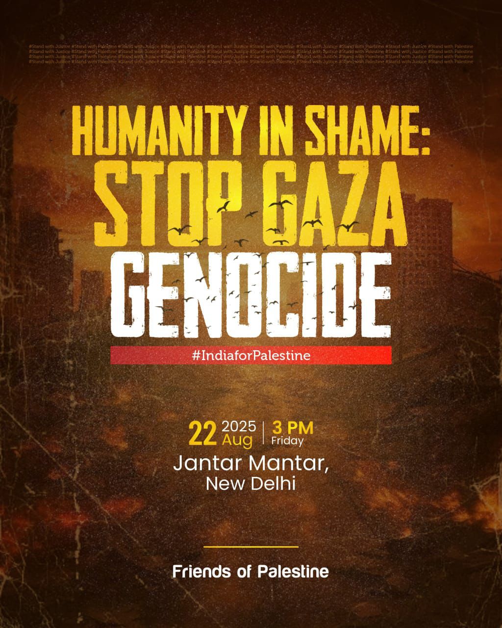 अपील में इस बात पर जोर दिया गया है कि विरोध प्रदर्शन में भागीदारी न केवल फिलिस्तीनियों के साथ भारत की एकजुटता को प्रदर्शित करेगी, बल्कि वैश्विक समुदाय को शांति, न्याय, एकता और भाईचारे का एक शक्तिशाली संदेश भी देगी.