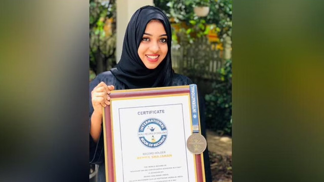 हिजाबी गर्ल रेहना शाहजहां ने 24 घंटे में 81 सर्टिफिकेट हासिल कर बनाया वर्ल्ड रिकॉर्ड