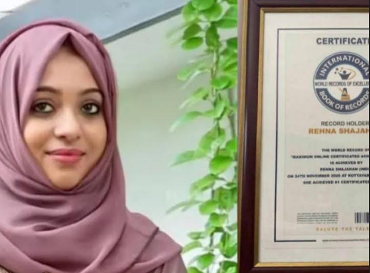 केरल की एक मुस्लिम लड़की ने भारत का नाम रोशन किया है. रेहना शाहजहां ने 24 घंटे में 81 सर्टिफिकेट हासिल किए. जिस तरह मुस्लिम लड़कियों को हिजाब पहनने पर टरगेट किया जाता है, वहीं एक हिजाबी गर्ल ने 24 घंटे में 81 सर्टिफिकेट को अपने नाम किया है. रेहना ने कर दिखाया है कि हिजाब पहनकर भी मुस्लिम लड़कियां कामयाबी हासिल कर सकती हैं.