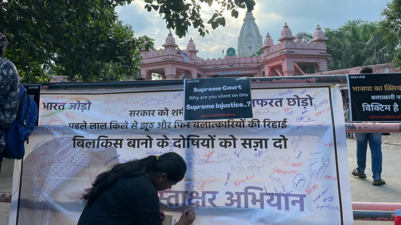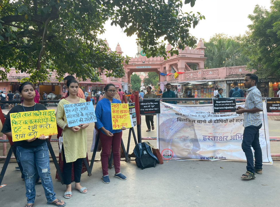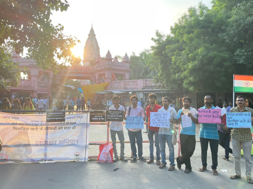 बनारस: बीएचयू के विश्वनाथ मंदिर परिसर में गुजरात दंगा प्रभावित गैंगरेप पीड़िता बिलक़ीस बानो के समर्थन में हस्ताक्षर अभियान आयोजित हुआ। इसके साथ ही सुप्रीम कोर्ट के मुख्य न्यायाधीश के नाम पत्र भी लिखे गए। यह आयोजन जॉइंट ऐक्शन कमेटी बीएचयू और दखल संगठन के नेतृत्व में हुआ।