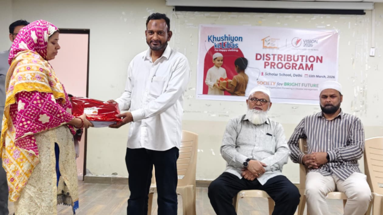 New Delhi: सोसाइटी फॉर ब्राइट फ्यूचर (Society for Bright Future), नई दिल्ली द्वारा “खुशियों के लिबास” शीर्षक से एक मानवीय सेवा कार्यक्रम का आयोजन स्कॉलर स्कूल में किया गया. इस कार्यक्रम के अंतर्गत लगभग 100 जरूरतमंद परिवारों को नए कपड़े और सेवई वितरित की गई, ताकि वे आने वाले ईद-उल-फितर के पावन अवसर को खुशी और सम्मान के साथ मना सकें.