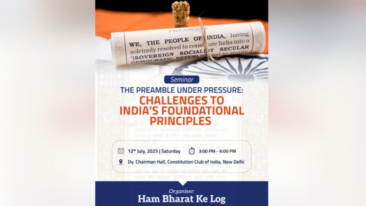 नई दिल्ली: कॉन्स्टिट्यूशन क्लब ऑफ़ इंडिया, नई दिल्ली (Constitution Club of India, New Delhi) के डिप्टी चेयरमैन हॉल में शनिवार, 12 जुलाई 2025 को “संविधान की प्रस्तावना पर संकट: भारत के बुनियादी सिद्धांतों के समक्ष चुनौतियाँ” विषय पर एक महत्वपूर्ण संगोष्ठी आयोजित की जा रही है. यह कार्यक्रम दोपहर 3:00 बजे से शाम 6:00 बजे तक चलेगा.