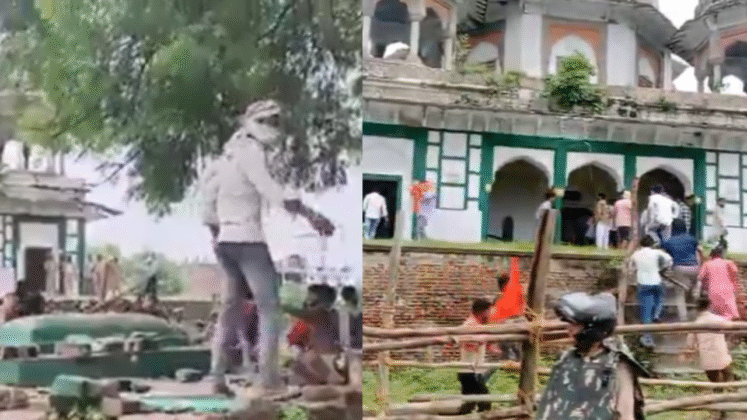 Fatehpur, Uttar Pradesh: देश में लगातार हिंदूवादी संगठन और दक्षिणपंथी नेता मुसलमानों के ईबादतगाहों में पहुंचकर हुड़दंग मचा रहे हैं. कभी मस्जिदों, दरगाहों के बाहर नारेबाजी कर रहे हैं, तो कभी मस्जिदों के मीनारों पर भगवा झंडा लगा रहे हैं. हिंदूवादी संगठन के लोग यह सब खुलेआम और बेखौफ होकर कर रहे हैं और सरकार, प्रशासन मुकदर्शक बनी हुई है. एक ऐसा ही मामला उत्तर प्रदेश के फतेहपुर से आया है, जहां BJP सहित कई हिन्दू संगठनों की हजारों की भीड़ ने ऐतिहासिक नवाब अब्दुल समद के मकबरे को मंदिर होने का दावा करते हुए खूब हंगामा मचाया. इसका वीडियो सोशल मीडिया पर वायरल हो रहा है. आईए जानते हैं पूरा मामला क्या है..